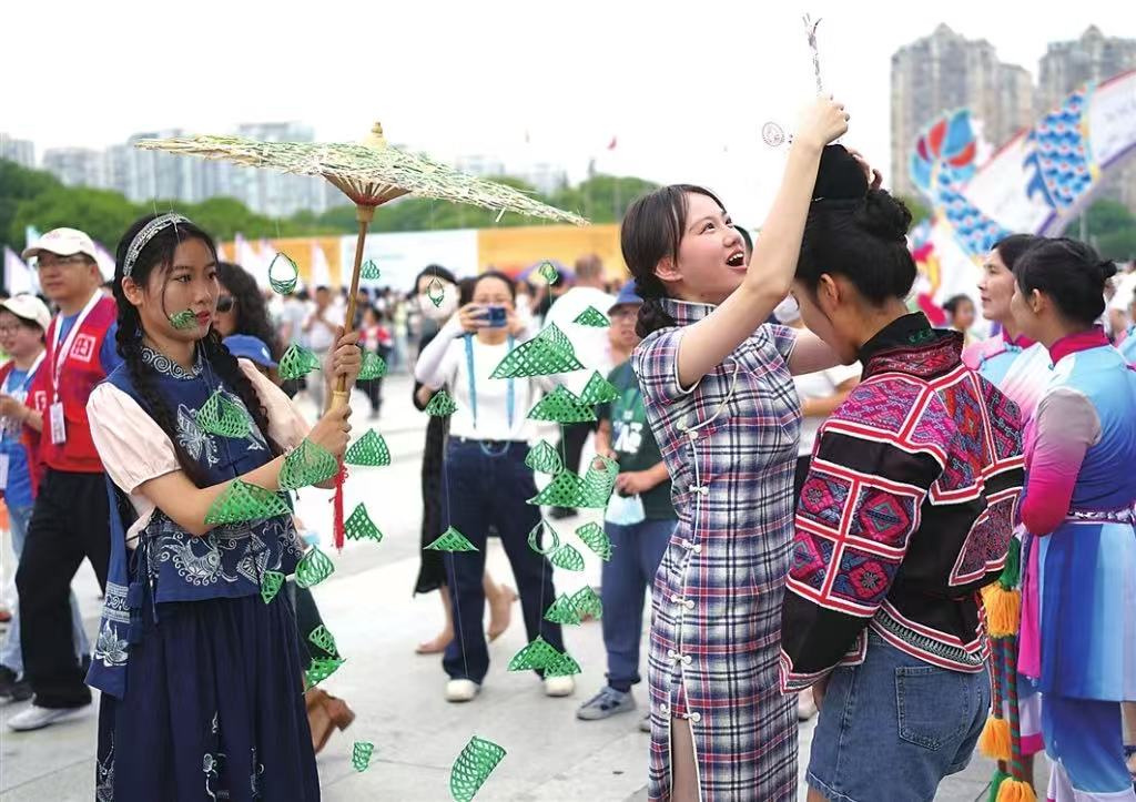 昨天,在金雞湖端午龍舟賽非遺市集上,以“經(jīng)緯千年·活力煥新”為主題的非遺服飾show驚艷全場。