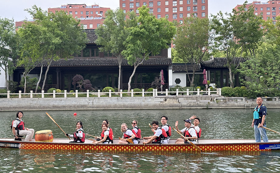 訓(xùn)練中,Shirley Tian的指令穿透風(fēng)聲:“注意槳葉入水角度,保持呼吸節(jié)奏。”作為征戰(zhàn)多屆龍舟賽事的“老將”,她對(duì)隊(duì)員們的訓(xùn)練要求嚴(yán)格。據(jù)她介紹,隊(duì)員們熱愛運(yùn)動(dòng),每次訓(xùn)練都全情投入,劃龍舟作為中國(guó)傳統(tǒng)特色項(xiàng)目,讓他們產(chǎn)生了濃厚的興趣,大家都希望借此機(jī)會(huì)深入感受端午節(jié)的獨(dú)特氛圍,留下在中國(guó)的珍貴回憶。