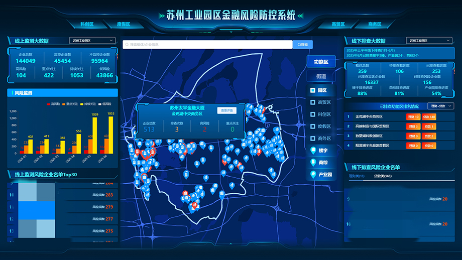 為進一步筑牢防非堅實防線,園區(qū)積極運用現(xiàn)代信息技術手段加強監(jiān)測預警。活動中,由園區(qū)金融發(fā)展和風險防范局牽頭建設的園區(qū)金融風險防控系統(tǒng)正式上線,整合工商、警情等44類數(shù)據(jù),疊加企業(yè)征信評分,運用9個維度、96個細化指標,為全區(qū)超14萬家企業(yè)進行科學賦分,進行分級分類處置。系統(tǒng)全程記錄監(jiān)測預警、研判定級、分類處置情況,構建風險企業(yè)閉環(huán)管理模式,實現(xiàn)風險隱患一屏統(tǒng)覽、處置流程一圖掌控。