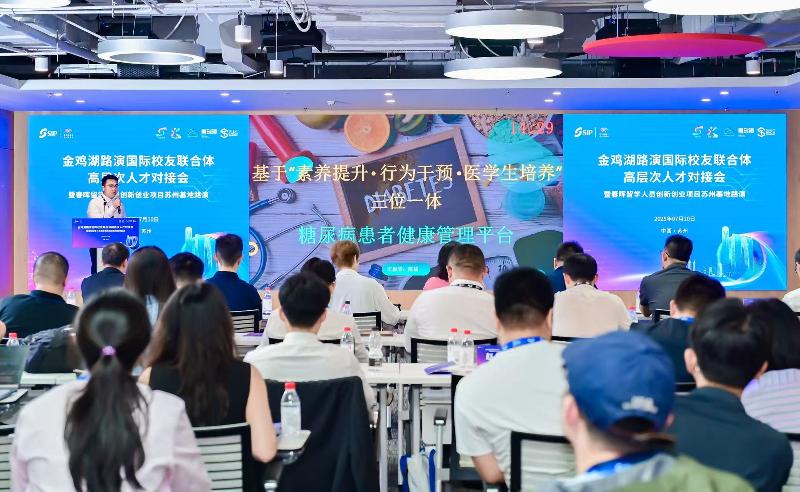 7月10日,2025第十七屆蘇州國(guó)際精英創(chuàng)業(yè)周園區(qū)分會(huì)場(chǎng)分項(xiàng)活動(dòng)——金雞湖路演國(guó)際校友聯(lián)合體高層次人才對(duì)接會(huì)暨春暉留學(xué)人員創(chuàng)新創(chuàng)業(yè)項(xiàng)目蘇州基地路演在國(guó)際人才港舉辦。八大國(guó)際校友組織助陣全球引才,來自7個(gè)國(guó)家(地區(qū))的9個(gè)海內(nèi)外博士創(chuàng)業(yè)項(xiàng)目,聚焦人工智能、生物醫(yī)藥、高端制造等戰(zhàn)略新興領(lǐng)域,上演科技創(chuàng)新盛宴,實(shí)現(xiàn)“全球匯智”與園區(qū)產(chǎn)業(yè)發(fā)展需求的精準(zhǔn)對(duì)接。