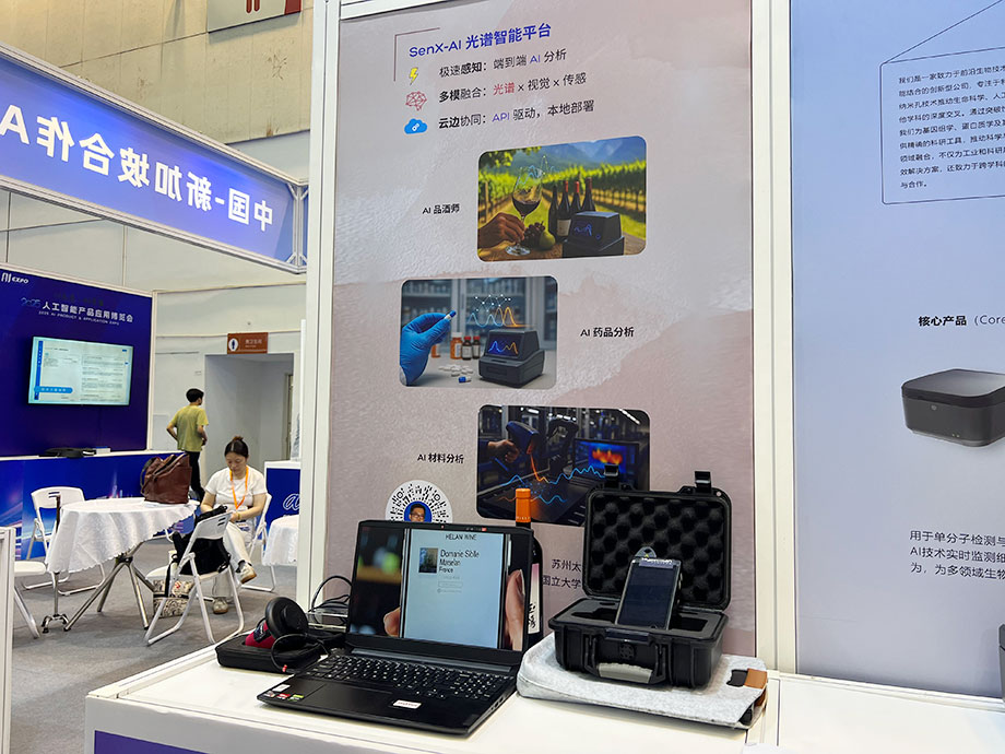 不用品嘗,如何快速了解葡萄酒的產(chǎn)地、品質(zhì)?太赫信息科技的光譜+AI解決方案就能快速“解題”。“我們的‘AI品酒師’,通過便攜式光譜設(shè)備,結(jié)合譜的數(shù)據(jù)、AI算法,能夠?qū)频娘L(fēng)味、產(chǎn)地進(jìn)行快速分析和判斷。這種無損檢測對消費者而言可以更好地選擇喜歡的酒,對酒莊而言則能夠在釀造過程中更好地調(diào)控風(fēng)味、提升品質(zhì)。”公司創(chuàng)始人兼CEO張楠介紹,太赫信息科技是新加坡國立大學(xué)蘇州研究院的孵化企業(yè),此次展會除了“AI品酒師”,還帶來了AI藥品檢測、AI材料分析兩個將先進(jìn)人工智能算法與光譜分析技術(shù)深度結(jié)合的產(chǎn)品。其中AI藥品檢測已經(jīng)用于公共安全行業(yè)對危險藥品、受管制藥品的快速識別,AI材料分析則在風(fēng)電葉片等復(fù)合材料的缺陷識別中擔(dān)當(dāng)起在線級別檢測的重任。