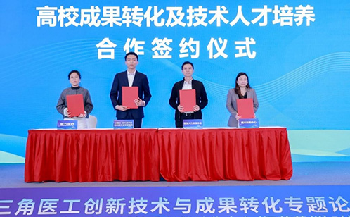 蘇州工業(yè)園區(qū)理交醫(yī)工交叉創(chuàng)新研究院與盛禾創(chuàng)新中心、維力醫(yī)療、園區(qū)人力資源協(xié)會(huì)共同簽署高校成果轉(zhuǎn)化和技術(shù)人才培養(yǎng)戰(zhàn)略合作協(xié)議,進(jìn)一步推動(dòng)科技成果對(duì)接和高技能人才培養(yǎng)工作。