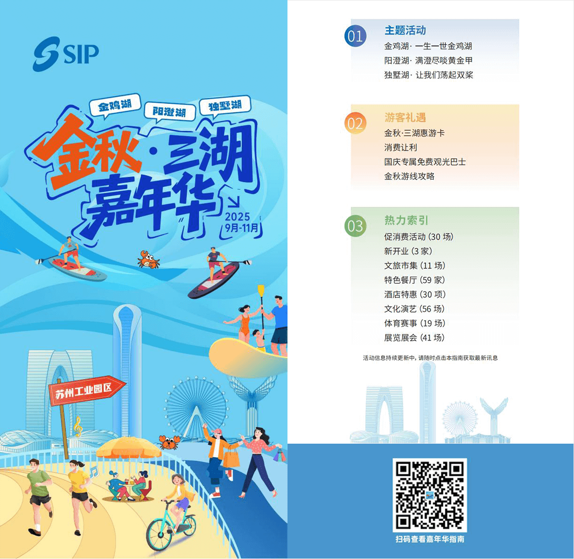 三大湖區、百項活動、千家商戶、十萬好禮、億元讓利——在蘇州工業園區,一場精心策劃的金秋商旅文盛宴正等你入席。9月13日,2025園區金秋?三湖嘉年華于瀲滟秋光中盛大啟幕。嘉年華以金雞湖、陽澄湖、獨墅湖為核心,持續約3個月,串聯商業、旅游、文化、體育、展覽等多元內容,織就一幅全域體驗、多業融合的金秋畫卷?;顒由疃蓉炌ā俺宰⌒杏钨強省比湕l,進一步釋放文旅消費動能,書寫“非凡之城”的精彩篇章,提升園區的品牌魅力與城市影響力。三湖聯動 打造現象級城市IP作為園區重磅打造的年度品牌活動,金秋?三湖嘉年華以“湖脈融合”為理念,通過差異化主題布局,讓三大湖區釋放出獨具特色的秋日吸引力——“浪... [詳細]