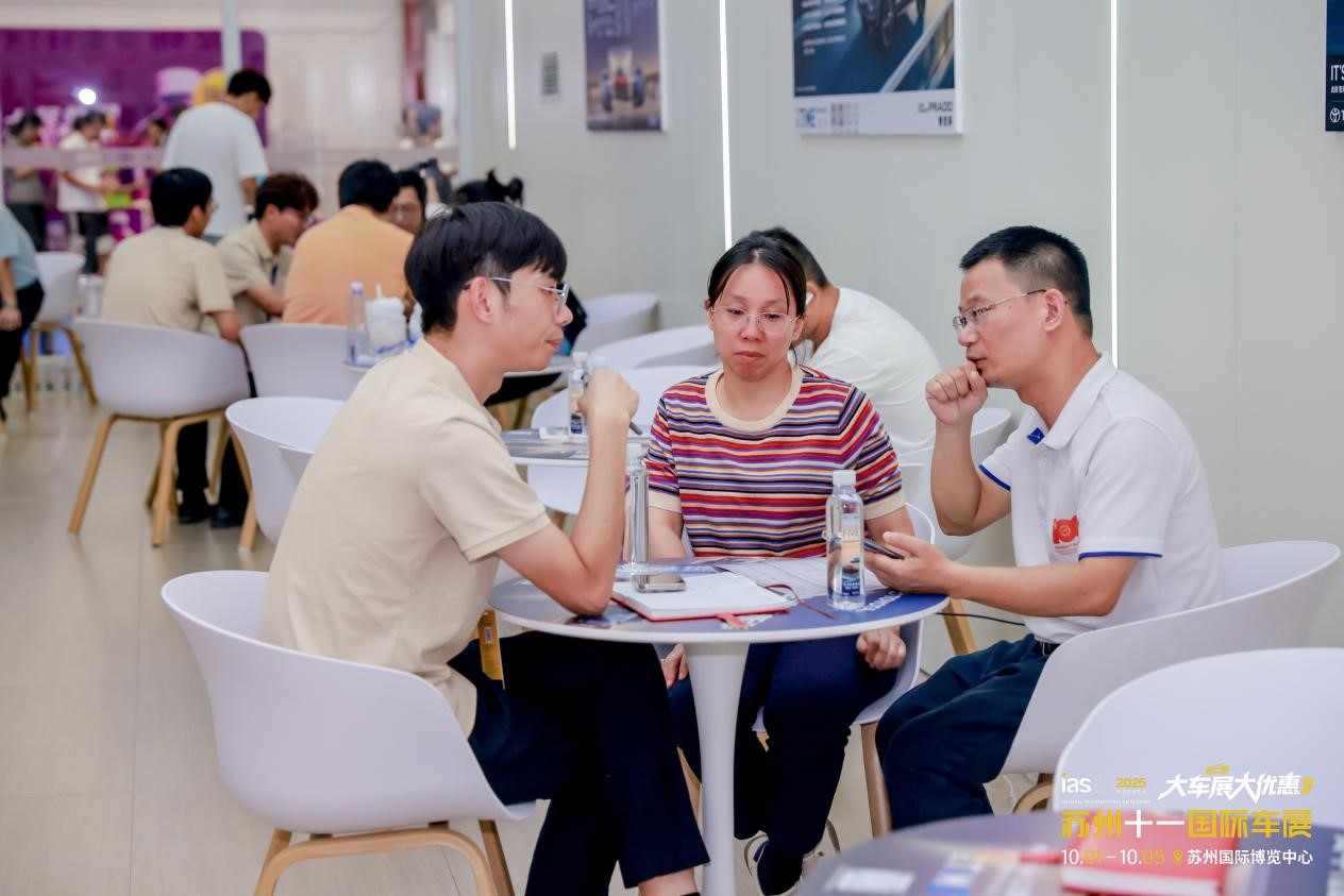 現場購車優惠更是誠意滿滿。近期,蘇州市2025年汽車煥新補貼政策發布,2億元補貼總額覆蓋燃油車與新能源汽車,單車至高補貼8000元。本次車展更創新推出“四重鉅惠”——政府補貼、廠商讓利、經銷商促銷與主辦方“抽黃金”購車禮形成疊加效應,讓消費者盡享實惠?!半p節期間訂車客戶激增,很多家庭都是沖著這波優惠來的?!蹦称嚻放平涗N商表示,現場體驗后當場簽單的消費者占比顯著提升。