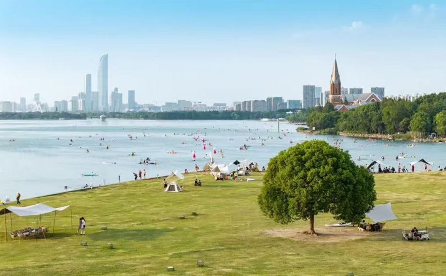 白鷺園、獨墅湖教堂、月亮灣等景點構成獨特風景線,成為許多人遠離喧囂、放松身心的理想之地。沿岸的公共藝術裝置與開放綠地吸引了眾多家庭前來露營、散步,享受假日的寧靜時光。