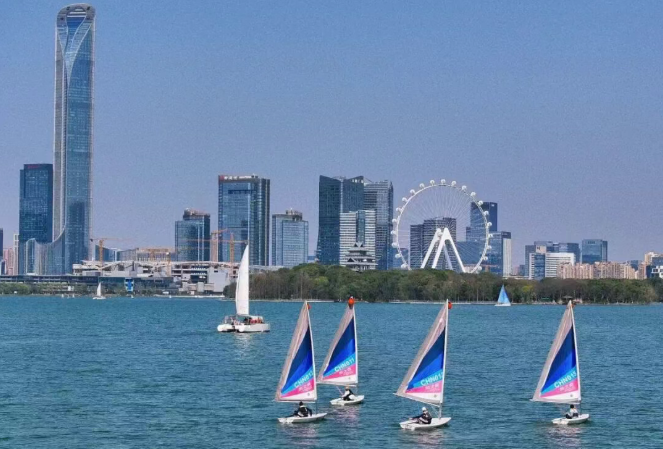 環金雞湖區域還推出一系列文旅融合活動,為假期增添了濃郁的文藝氣息。有南藝術館“每一天星期天”潮流藝術展、城市藝術客廳“后園林圖景”藝術展等文藝展覽,涵蓋不同主題與風格,為觀眾帶來浪漫美學體驗。金雞湖桃花島歡樂洋溢,萌寵藝術運動會、雙人槳板賽事等精彩不斷;蘇州之眼“云朵治愈季”營造童話場景,鵝島啤酒精釀節點燃游客熱情,魚燈巡游與國潮音樂碰撞出別樣火花。