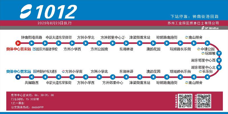 奧體中心首末站:6:30-19:30,調(diào)整為:奧體中心首末站:6:30-20:00,增加停靠“方洲鄰里中心②”站。