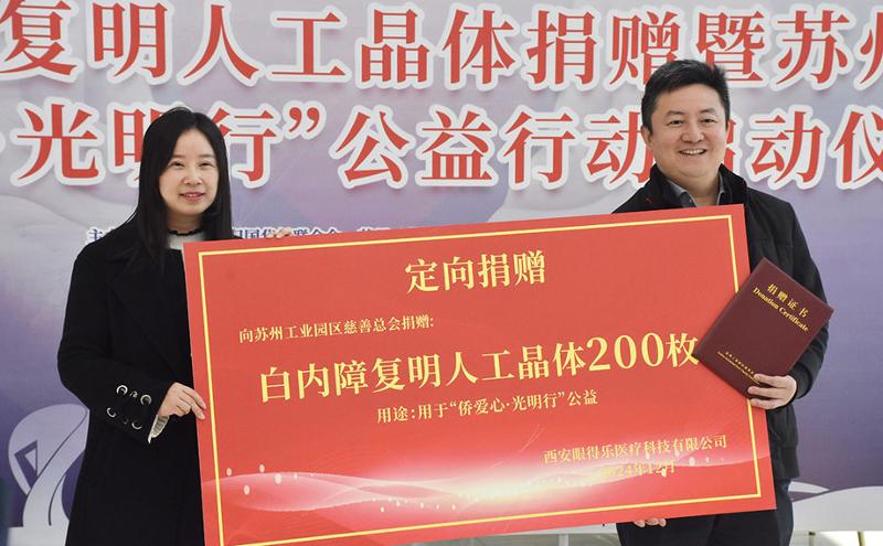 崇德向善,與愛(ài)同行。12月24日上午,蘇州“僑愛(ài)心·光明行”公益行動(dòng)啟動(dòng)儀式在蘇州工業(yè)園區(qū)舉行。現(xiàn)場(chǎng),愛(ài)心企業(yè)西安眼得樂(lè)醫(yī)療科技公司向蘇州工業(yè)園區(qū)慈善總會(huì)定向捐贈(zèng)白內(nèi)障復(fù)明人工晶體200枚,后續(xù)將由蘇州九龍醫(yī)院推進(jìn)落實(shí),惠及在蘇僑胞及全市眼部疾病患者。