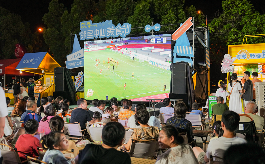 夜幕降臨,美食節(jié)的氛圍愈發(fā)濃烈。熱辣滾燙的樂隊演出點燃全場,露天電影屏幕前座無虛席,“蘇超”賽事的歡呼聲此起彼伏,限定主題活動輪番登場。“剛下班就來趕場,這口湯包太地道了!”家住附近的宋女士手里拎著打包盒,正準備走向露天觀影區(qū)。蔡同學捧著章魚燒站在人群中,眼睛緊盯著球賽屏幕:“暑假快結束了,在這兒吃著玩著還能看比賽,開學都有勁兒了。”除美食盛宴外,本屆美食節(jié)還推出各類互動活動,無表情吃芥末大賽、十米比薩拉絲挑戰(zhàn)等互動項目引發(fā)陣陣歡笑;金槍魚開魚秀、烤全羊宴等特色項目每日吸引超千人參與。
