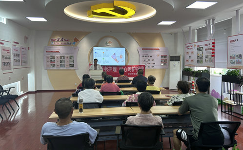 課堂上,專業(yè)護(hù)理講師用通俗易懂的語(yǔ)言為在場(chǎng)居民講解實(shí)用知識(shí),從老年人常見慢性病的日常監(jiān)測(cè),到臥床老人的翻身、叩背等護(hù)理技巧,都逐一細(xì)致講解。為讓大家更好地掌握動(dòng)作要領(lǐng),老師還現(xiàn)場(chǎng)演示了正確的輪椅轉(zhuǎn)移、血壓測(cè)量等操作,并邀請(qǐng)學(xué)員上臺(tái)實(shí)操練習(xí),及時(shí)糾正不規(guī)范的動(dòng)作。