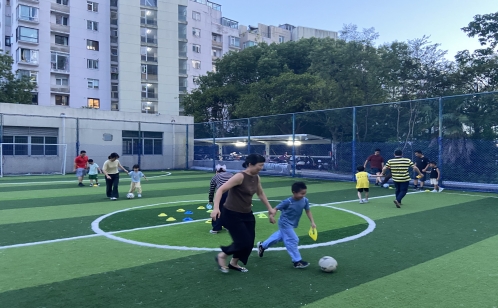 600㎡塑膠草坪上,球門與界線勾勒出“蘇超”同款競技軌跡。兩米高攔網筑牢安全防線,人臉識別門禁實現智能管理,四季新社區足球場讓熱愛在奔跑中復刻賽場激情。
