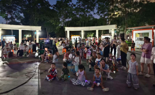 電影區(qū)是夜晚最具氛圍感的角落。在青春家園社區(qū)新時(shí)代文明實(shí)踐站,銀幕在晚風(fēng)里輕輕晃動(dòng),孩子們吃著冰棍搶占前排“黃金位置”,老人們搖著蒲扇在后排閑話家常。當(dāng)經(jīng)典動(dòng)畫《哪吒之魔童鬧?!返钠^曲響起,全場瞬間安靜下來,隨著劇情起伏,孩子們的歡呼與驚嘆此起彼伏;浦田社區(qū)新時(shí)代文明實(shí)踐站的納涼晚會(huì)也熱鬧非凡,清風(fēng)為幕,銀屏作景,志愿者們借此契機(jī)開展反詐宣傳、垃圾分類宣傳、移風(fēng)易俗宣傳,鄉(xiāng)音講述的“婚事新辦、喪事簡辦”的暖心故事,引發(fā)共鳴連連。
