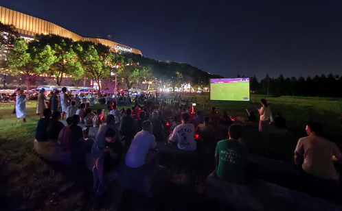 綠茵熱血、湖畔納涼。蘇超聯(lián)賽的夜間專場讓球迷們過足癮。在龍湖星湖天街,“星湖草坪計(jì)劃-蘇超第二現(xiàn)場”觀賽活動(dòng)吸引了眾多居民參與。屏幕上,球員們精準(zhǔn)的傳球、迅猛的突破、奮力的射門,每一個(gè)動(dòng)作都牽動(dòng)著觀眾的心;屏幕外,吶喊聲、助威聲此起彼伏,“加油!”“好球!”的喊聲不絕于耳,將夏夜的激情推向了高潮。青劍湖畔的文明市集上,手作飾品的精巧、文創(chuàng)產(chǎn)品的新奇、特色小吃的香氣,吸引著觀賽間隙的居民駐足流連,使得夜市的煙火氣與球場的熱烈氛圍交相輝映。