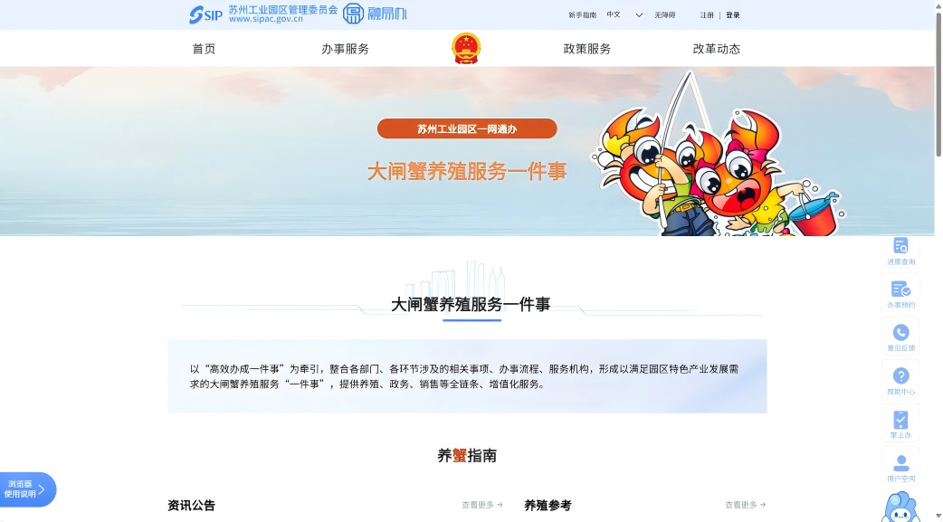 為讓群眾辦事更便捷,園區聚焦高頻民生需求,完成衛健、入學報名、暑托夏令營等10余項服務模塊升級,還聚焦各類特色產業,針對性上線“大閘蟹養殖服務一件事”專區,創新推出首店服務、企業出海服務等多個園區特色一件事,實現“減環節、減材料、減時限”。