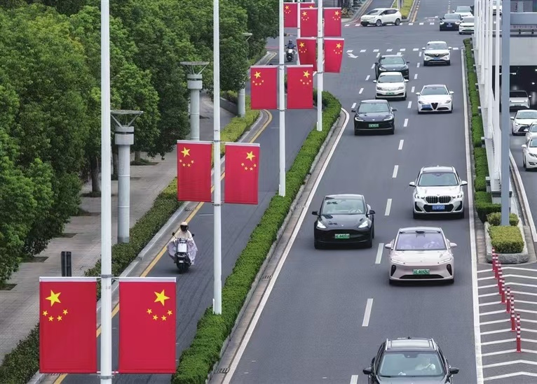 昨天,園區星港街路兩側掛上了鮮艷的五星紅旗,為即將到來的國慶佳節營造了濃濃的喜慶氛圍。