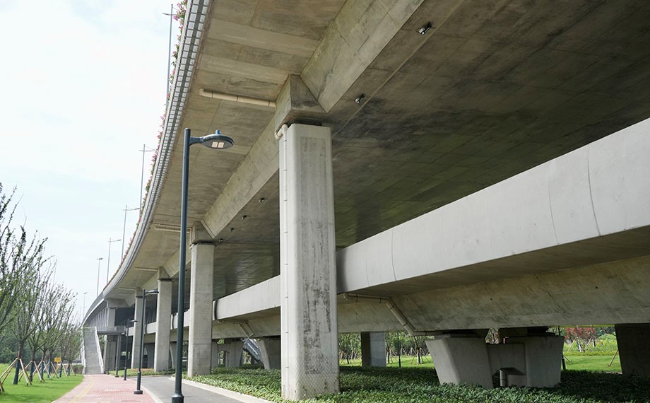 One of the highlights of this project is its double-layer steel truss overpass with an upper two-way six-lane motorway and a lower part for motor vehicles, non-motor vehicles and pedestrians.