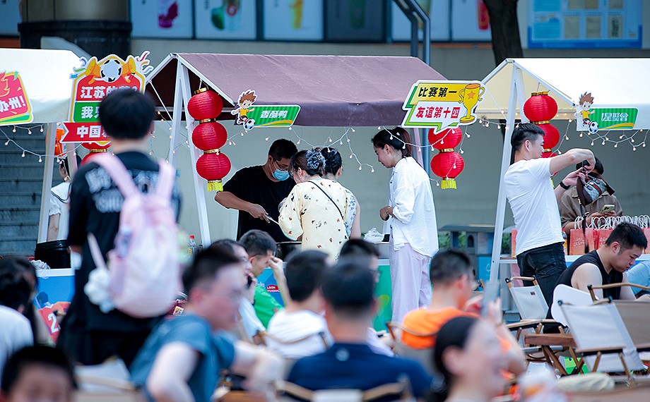 The night market at Modern Media Square provides not only various products, but also chances for visitors to showcase their football skills, and the one at Lakeside Square of Suzhou Culture and Arts Centre incorporates performances.